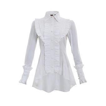 نسائي فيكتوري كشكش قميص كم طويل بلوزة قوطية مع حاشية عالية منخفضة ومطيات أمامية