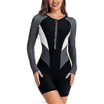 Women's Long Sleeve Zip Front One Piece Swimsuit Rash Guard for Surfing Diving Athletic Swimwear