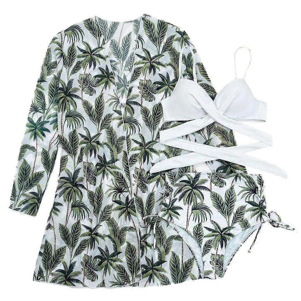 Womens Sexy 3 Piece Bikini Set Criss for Cross Push Up Swimsuit with Beach Cover Up Cardigan Side Tie High Waist Tropical Leaves Floral Print Bathing