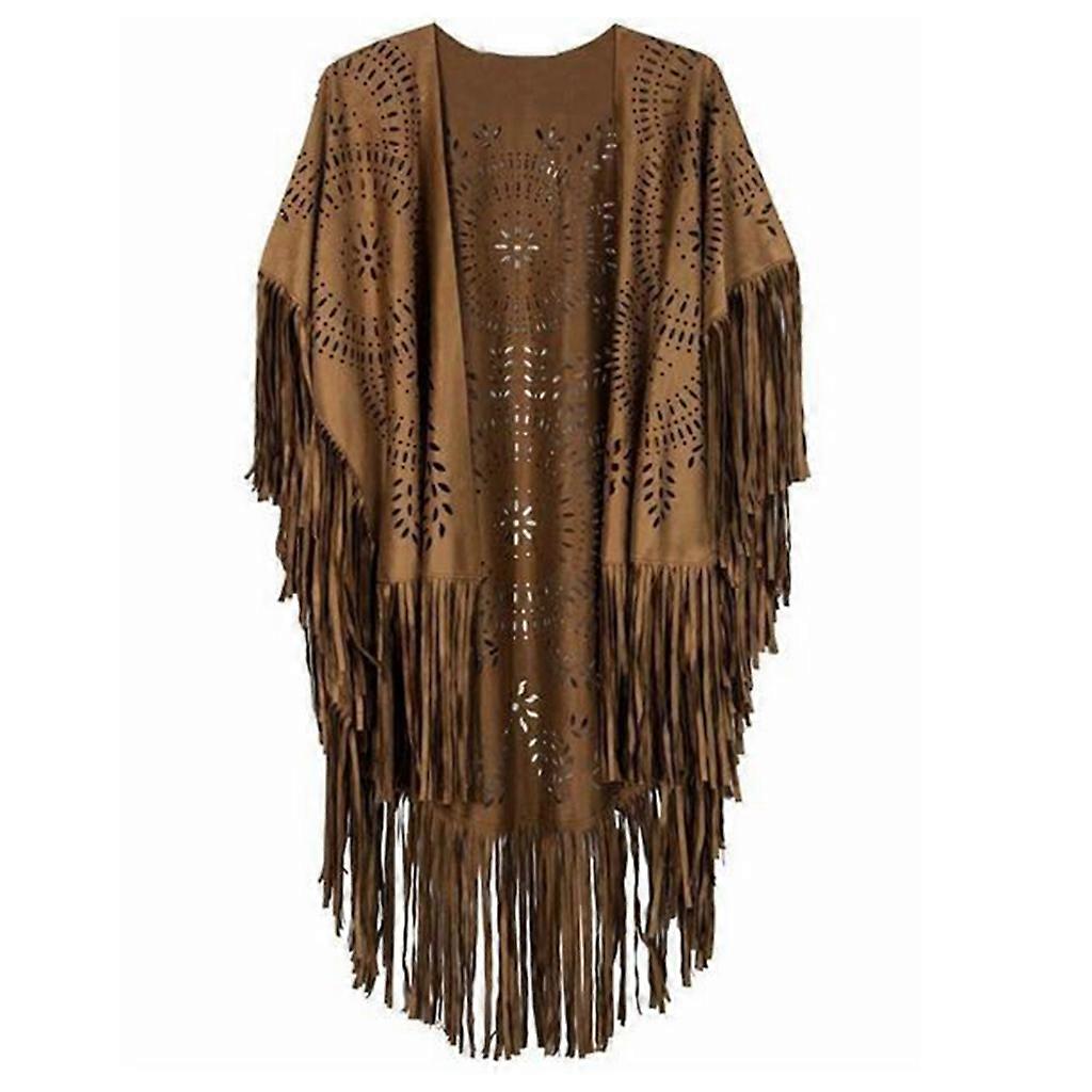 Women's Fringe Faux Suede Vest 70s Hippie Sleeveless Tassels Cardigan Jackets