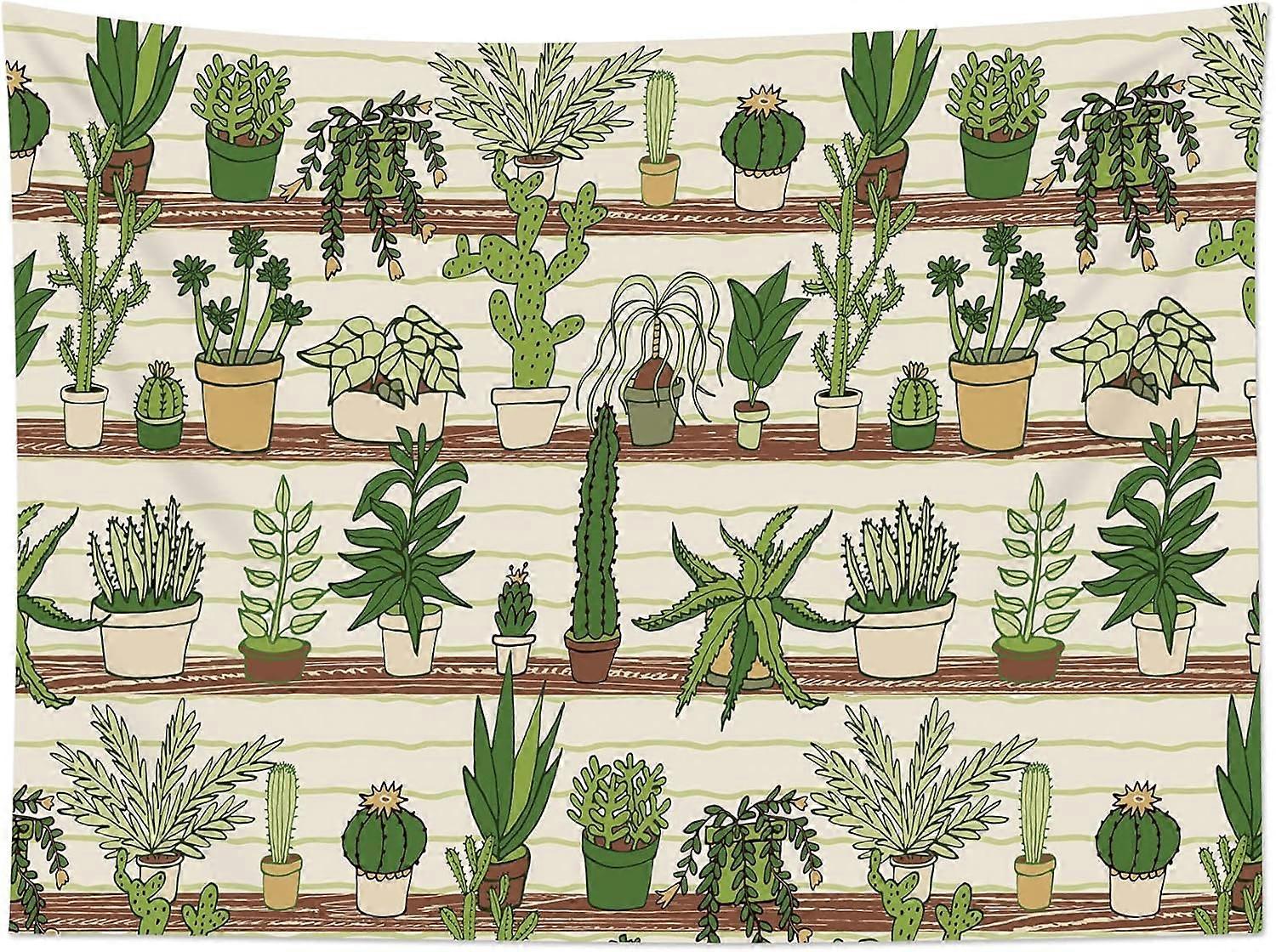 Cactus Tapestry Tropical Desert Succulent Plants on Wood Shelf Wall Hanging Blanket Watercolor Botanical Tapestries for Bedroom Living Room Dorm Decor