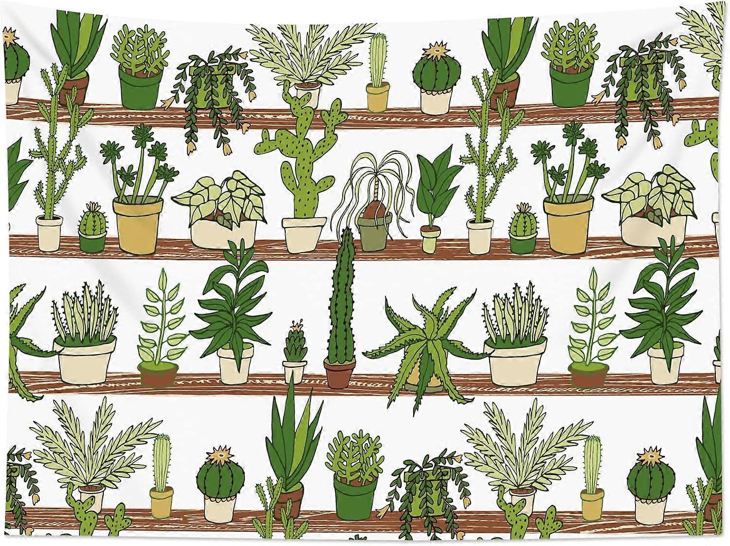 Cactus Tapestry Tropical Desert Succulent Plants on Wood Shelf Wall Hanging Watercolor Botanical on White Tapestries for Bedroom Living Room Dorm Deco