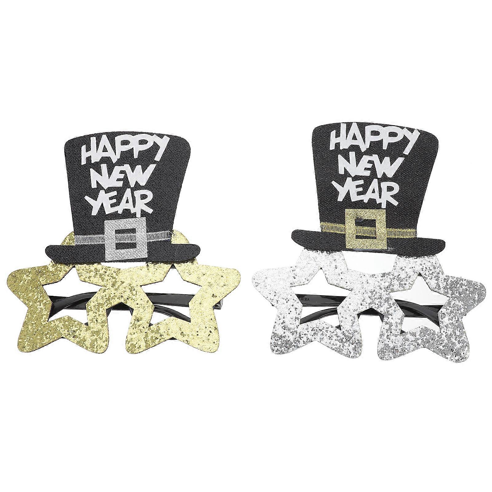 Festive Atmosphere Eyeglasses New Year Party Photo Props Silver 2Pcs