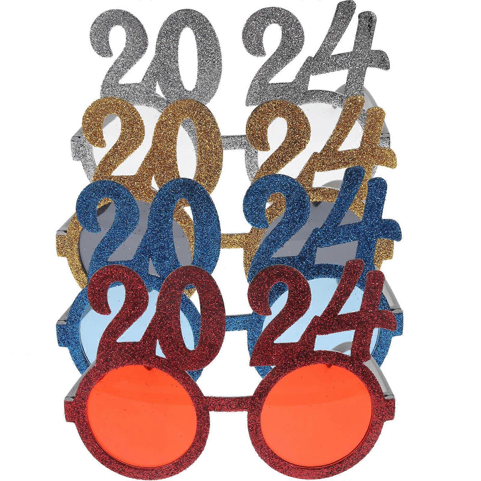 New Year Party Glasses 2024 Funny Party Decoration For All Ages Assorted Color Photo Props 4Pcs