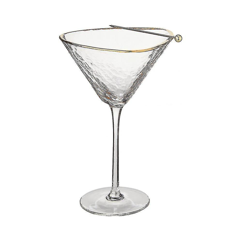 Hammered Martini Glasses With Gold Rim, Set Of 2, Gold Rimmed Martini Glasses And 2 Gold-plated Cocktail Picks, Unique Martini Glass
