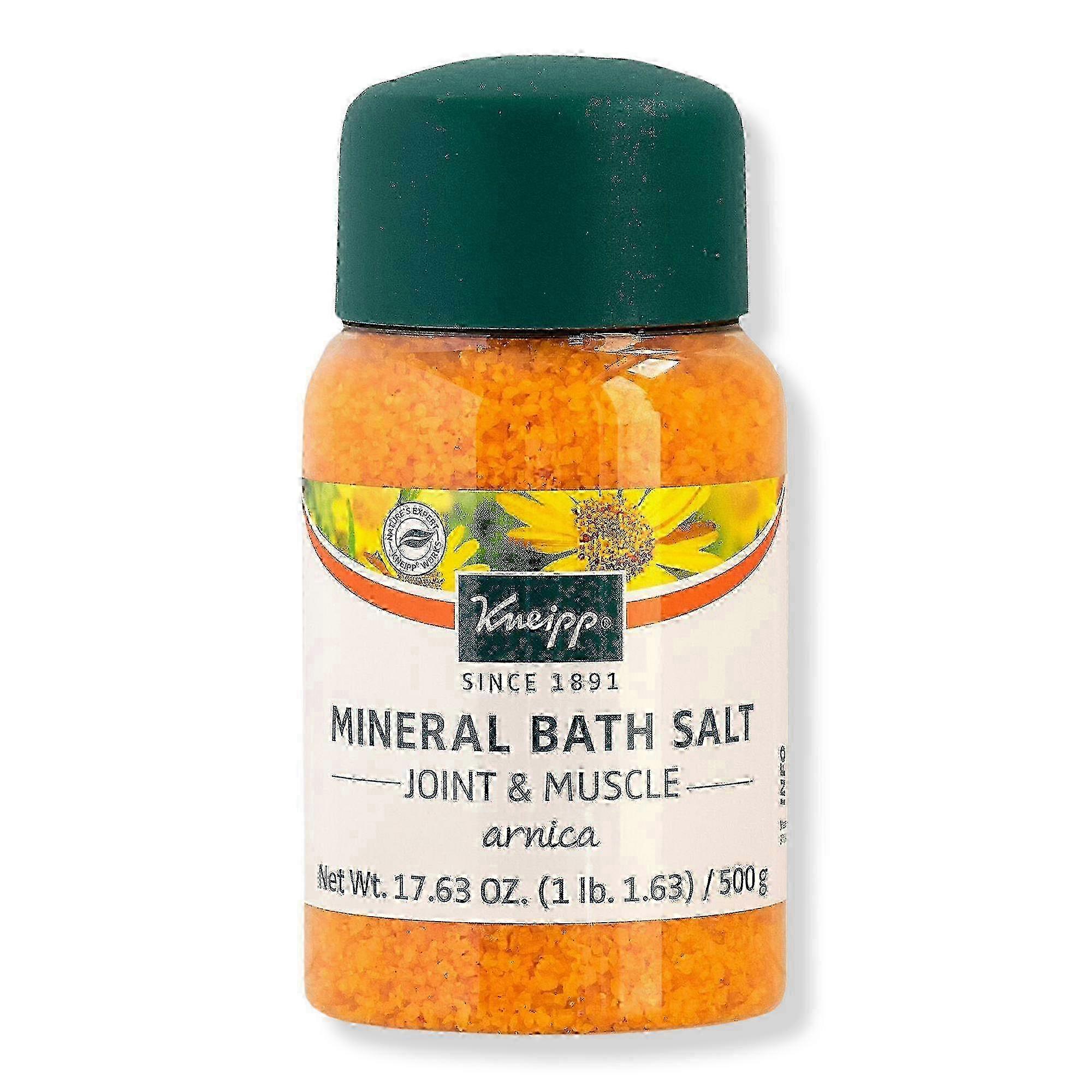 The Kneipp Joint & Muscle Arnica Mineral Bath Salt Soak is a power-packed blend of essential oils and Arnica Extract to loosen up and revive tired muscles.BenefitsA salt soak unlike any other: contains exclusive, pure salt sourced from an ancient ocean hidden deep below the EarthSoothes joints and muscles with a bath ritual that keeps you activeArnica, Rosemary, and Eucalyptus Essential Oils combine to give a therapeutic fragranceVibrant color transforms your bathtub into a sanctuary for easing strain and boosting positivityPacked with trace elements and minerals to benefit and intensely smooth your skinUnique salt crystal structure naturally absorbs more essential oils than smaller grain salt, allowing for a more concentrated and effective aromatherapy experiencegives up to 10 restorative bathsMade with Clean Ingredients by Kneipp, celebrating 130 years of bath expertiseFormulated WithoutParabensPhthalatesSiliconesPetrolatumParaffinMineral OilSuggested Use: Add 3/4 cap of bath salt to warm bath water. Enjoy bath for 15-20 minutes - water temperature: 97-100 degrees F/ 36-38 degrees C. Precautions: Hot or warm soaks should not be used by individuals with diabetes, except on advice of physician. For external use only. Do not ingest. Use only as directed. Keep out of reach of children. If irritation occurs, discontinue use. Consult a physician if irritation persists. If product enters the eye, wash out thoroughly with plenty of clean water.Expiration Date: We have fresh stock each week with exceptional expiration dates prior to APRIL 2024. Products will expire no later than six months to 1 year after receipt.Product Packaging: Please note that some manufacturer may often change their packaging. This product may arrive different from what is pictured. We will always ship the most up-to-date packaging to our customers. Please contact us if you have any questions about this product or would like to request an older version of this product.Healthcare Disclaimer: Content on this site is for reference purposes only. OTC Shoppe Express does not represent or warrant that the nutrition, ingredient, allergen and other product information on our Web or Mobile sites are accurate or complete, since this information comes from the product manufacturers. On occasion, manufacturers may improve or change their product formulas and update their labels. We recommend that you do not rely solely on the information presented on our Web or Mobile sites and that you review the product's label or contact the manufacturer directly if you have specific product concerns or questions. If you have specific healthcare concerns or questions about the products displayed, please contact your licensed healthcare professional for advice or answers. UPC: 000002566334 Weight: 1.63 lbs