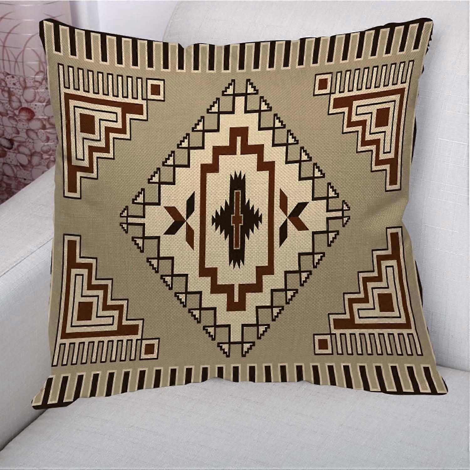 Traditional Pattern Throw Pillow Covers Vintage Retro Native Tribal Design Cushion Cover Pillow Case for Sofa Couch Bedroom Living Room 18X18 in