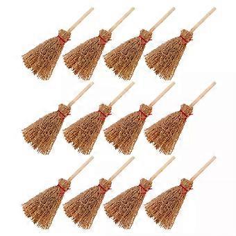 Witch Broom Model, 12 Pcs Small Halloween Figurines Dollhouse Miniature Brooms