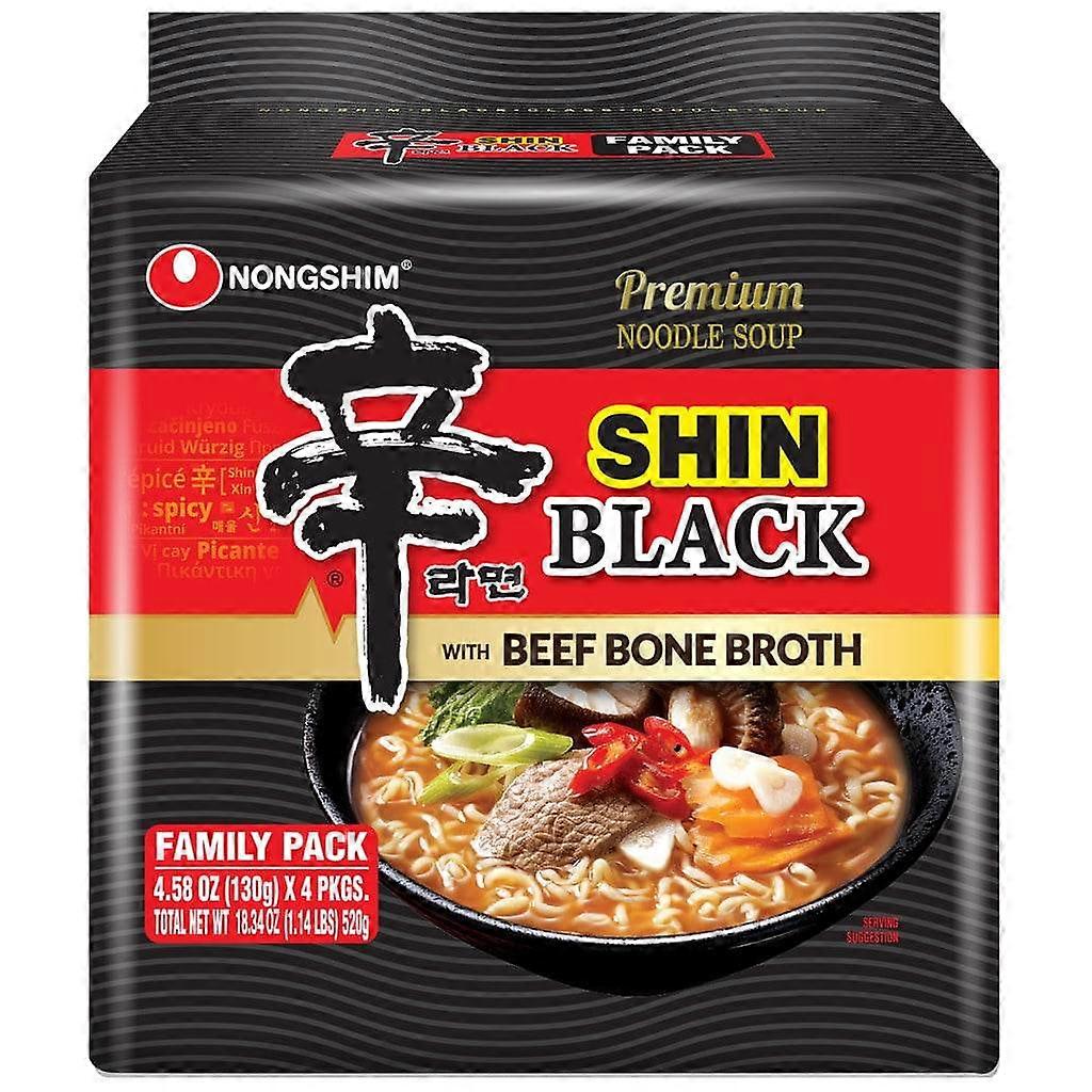 Nongshim Shin Black Ramyun Premium Ramen Noodle Soup Pack, Spicy Beef, 4 Ea