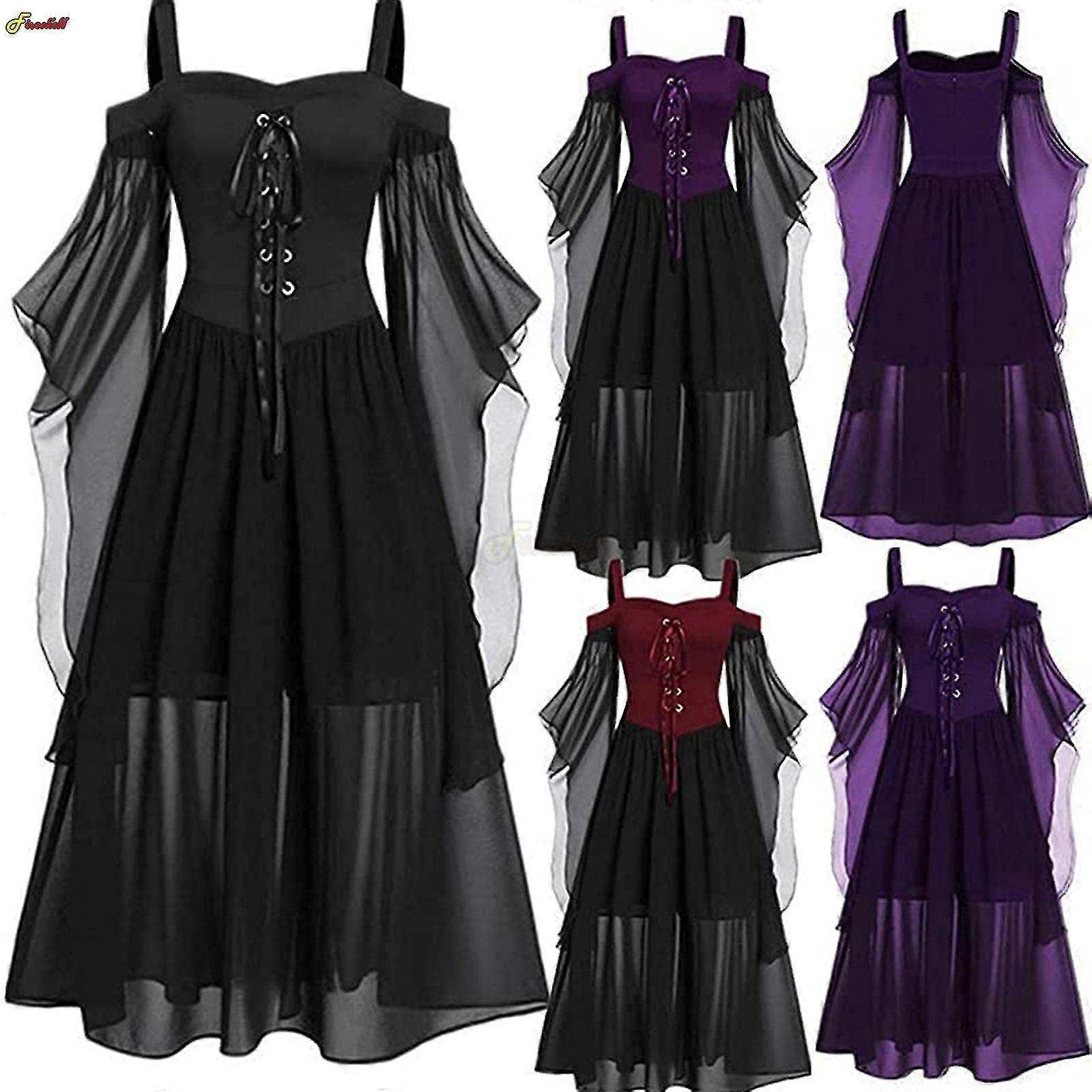 Halloween Witch Cosplay Costumes Gothic Off Shoulder Lace-up Vestidos Bandage Mesh Sheer A-line Long Party Dress For Women
