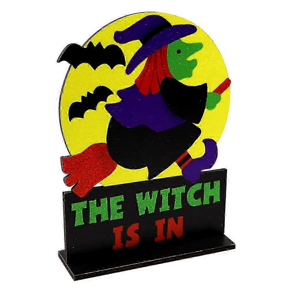 Halloween Moon Witch Wooden Desktop Ornaments for Creative Decor for Home Indoor