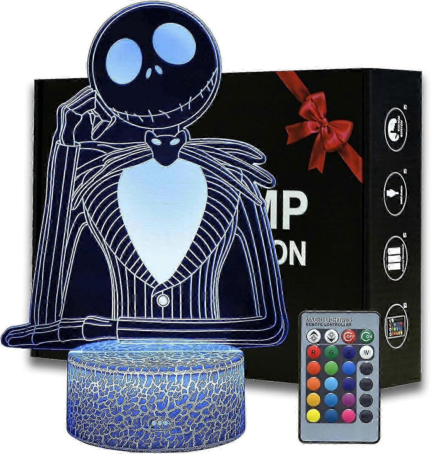 Halloween Town Pumpkin King Jack 3D Illusion Night Light, 16 Colors Changeable Room Decor Desk Lamp with Remote, Creative Lighting Gifts for Kids Birt