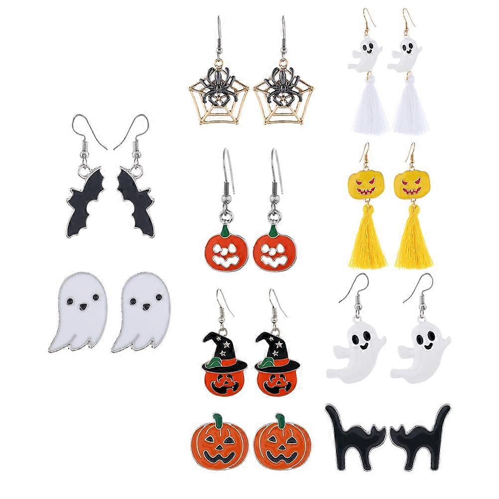 Halloween Themed 10 Pairs Dangle Earrings Assorted Color Ideal For Festival Parties Daily Dress Decoration