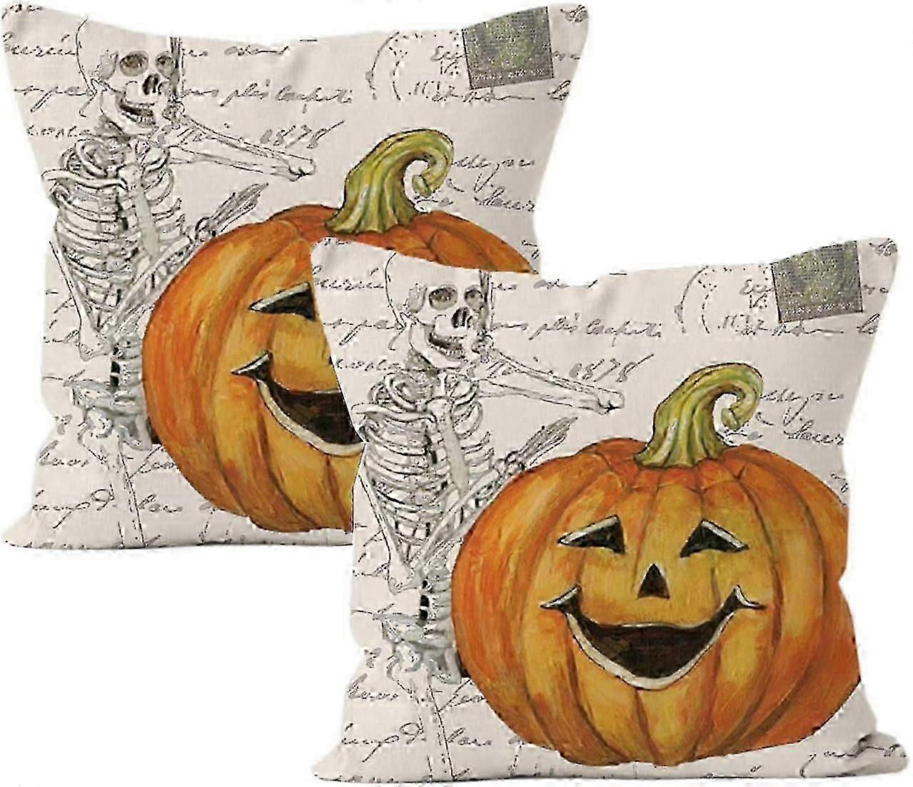 Halloween Skull Pumpkin Pillow Covers 18x18 Inch Set Of 2 Halloween Decorations Fall Throw Pillow Covers Hr