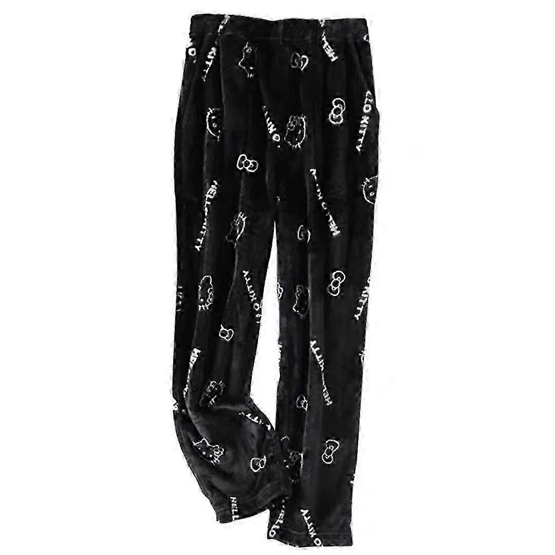 Halloween Sanrio Hello Kitty Pajama Pants Women's Trendy Autumn/winter Nightwear Flannel Sleepwear Kawaii Casual Plush Trousers