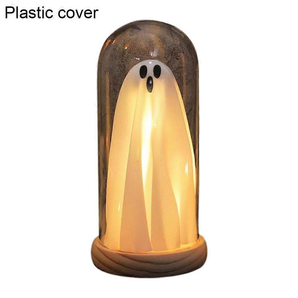 Halloween Ghost Decoraction Light-Ghost in Glass/Plastic Cloche with Wood Base