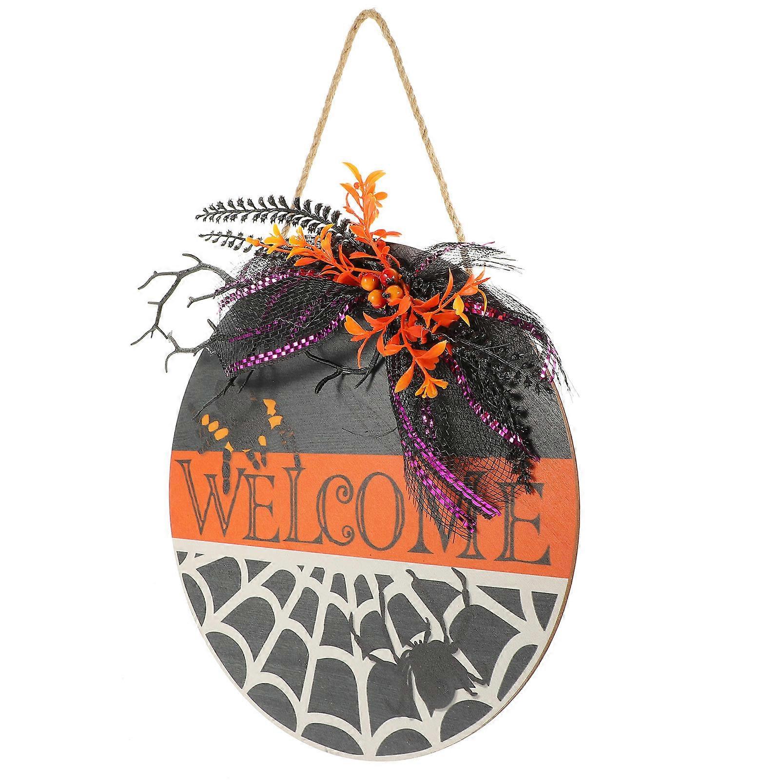 Halloween Welcome Sign Round Style Wood Material Home Decoration Outdoor Use 1Pack