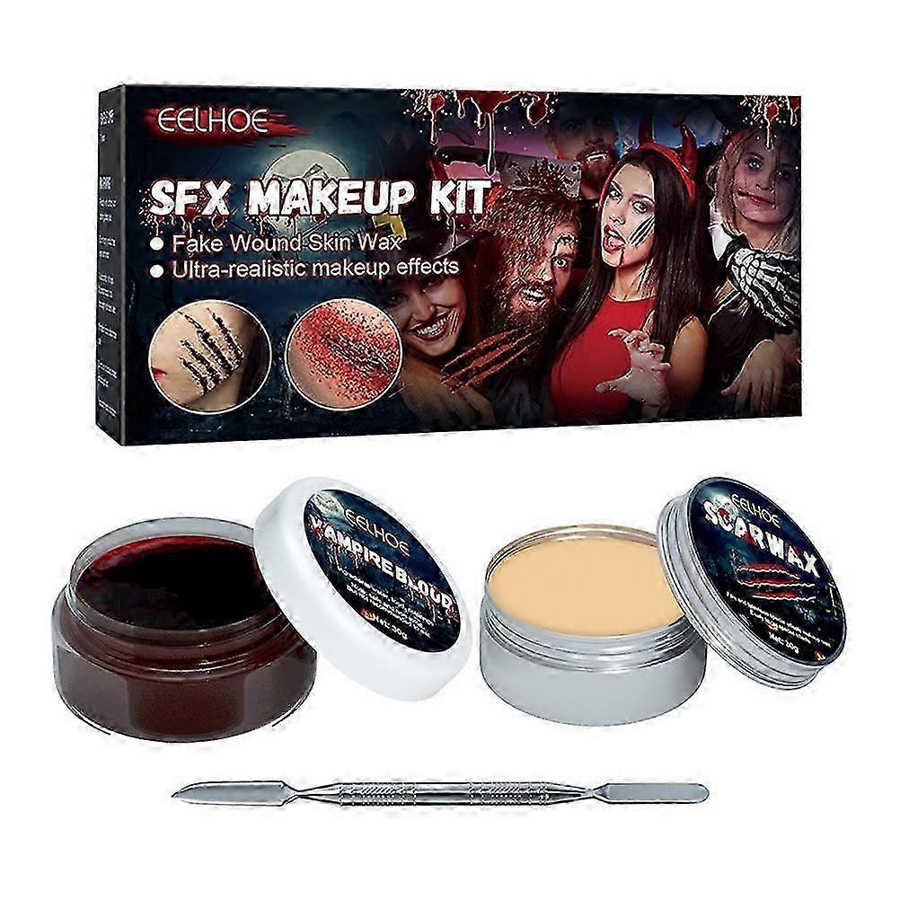 Halloween Scar Wax Fake Blood Gel Kit Makeup Skin Wax Special Effects Halloween Stage Fake Wound Molding Scar with Spatula