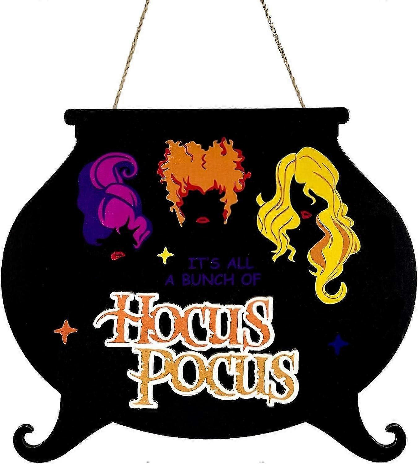Halloween Hocus Pocus Decor Halloween Wreaths for Front Door Wooden Door Sign Hanging Sign for Indoor Outdoor Wall Home Decorations 11.8 x 10 Inch