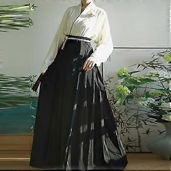 هانفو الحصان الوجه تنورة مجموعات النساء الصينية خمر الحديثة هانفو الكاكي الأخضر قميص أسود + تنورة 2 قطع مجموعات للنساء بالإضافة إلى حجم XL مجموعة سوداء