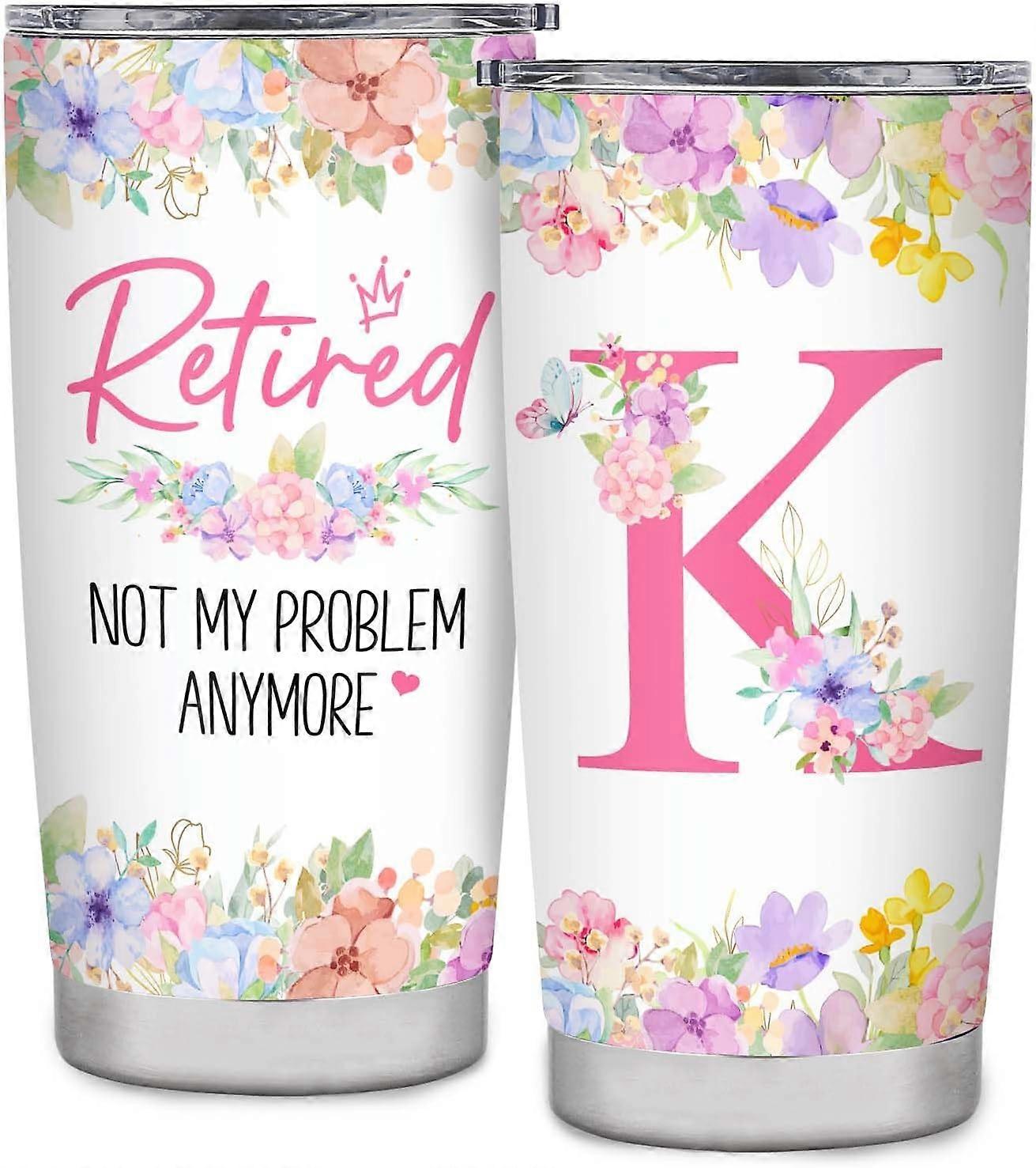 Retirement Gifts for Women 2024 Tumbler,Personalized Initial K Gifts,Retired Gifts For Women,Retirement Party Decorations,Coworker Leaving Farewell Go