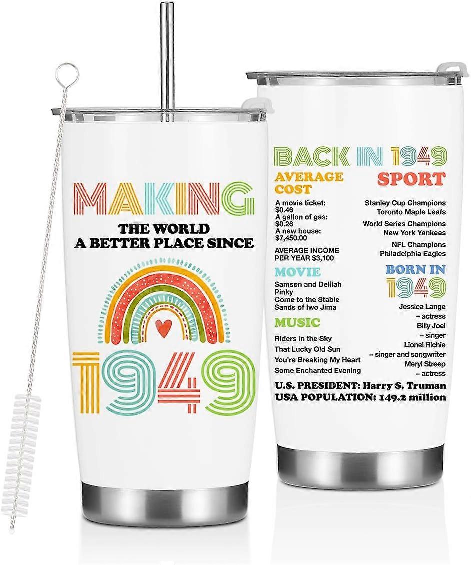 75th Birthday Gifts for Women, Best Gifts for 75 Year Old 1949 Women's Birthday Gift Ideas, 20oz Tumbler Stainless Steel Double Wall Vacuum Insulated