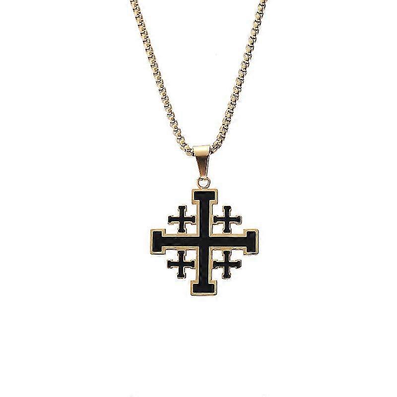 Medieval Religious Jewelry Gift Jerusalem Cross Pendant Necklaces For Women Men Stainless Steel Statement Chains Colars - SS