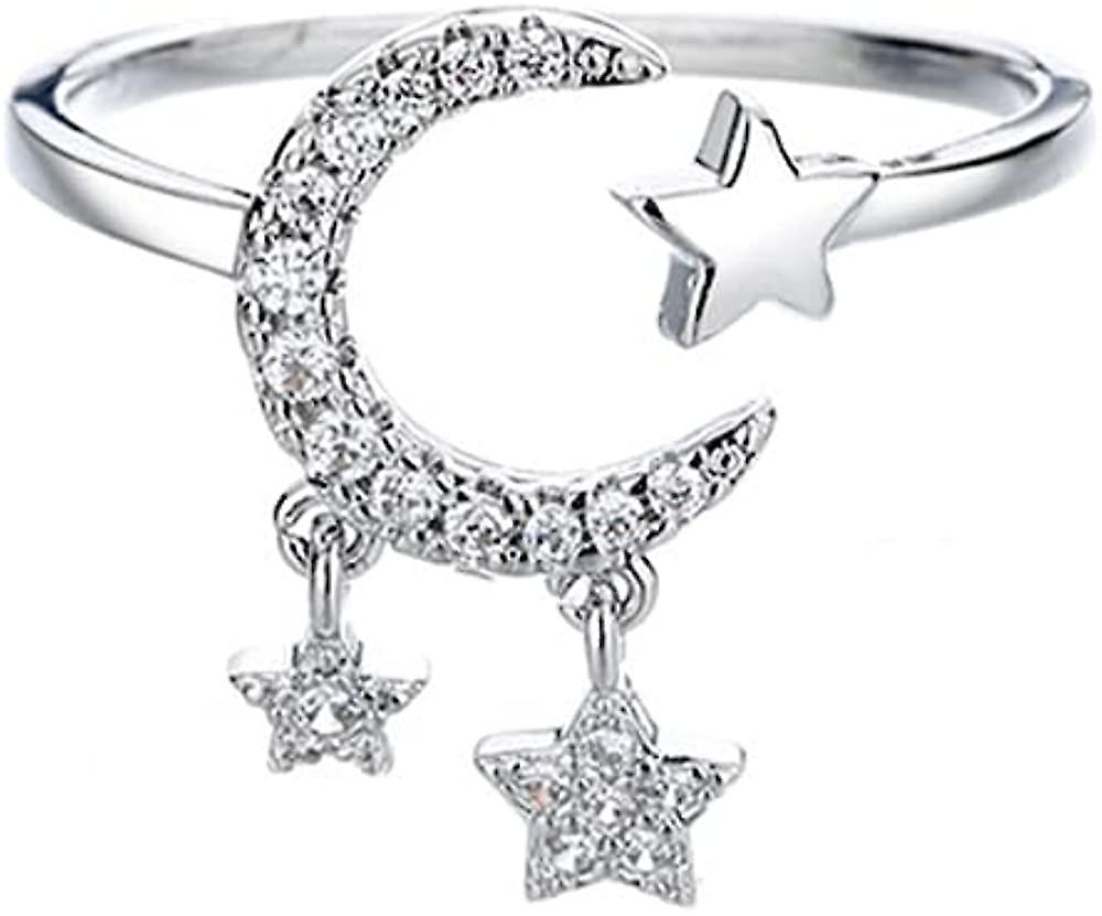 Crescent Moon Star Open Rings for Women Girls Cubic Zirconia Dangle Tassel Adjustable Stacking Statement Knuckle Finger Ring Promise Gift Anniversary