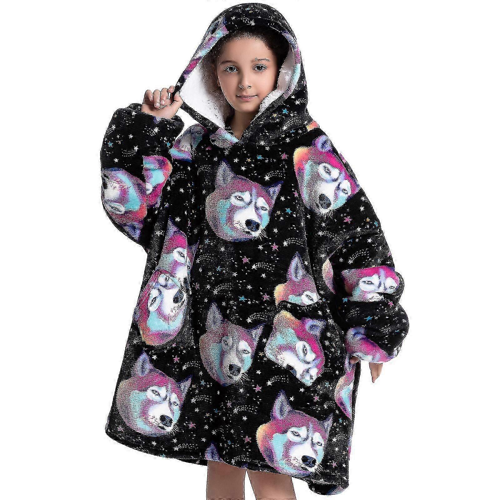 Oversized Blanket Hoodie For 4-12 Years Kids Halloween Wearable Hooded Blanket Pumpkin Print Soft Warm Flannel Hoodie Sweater