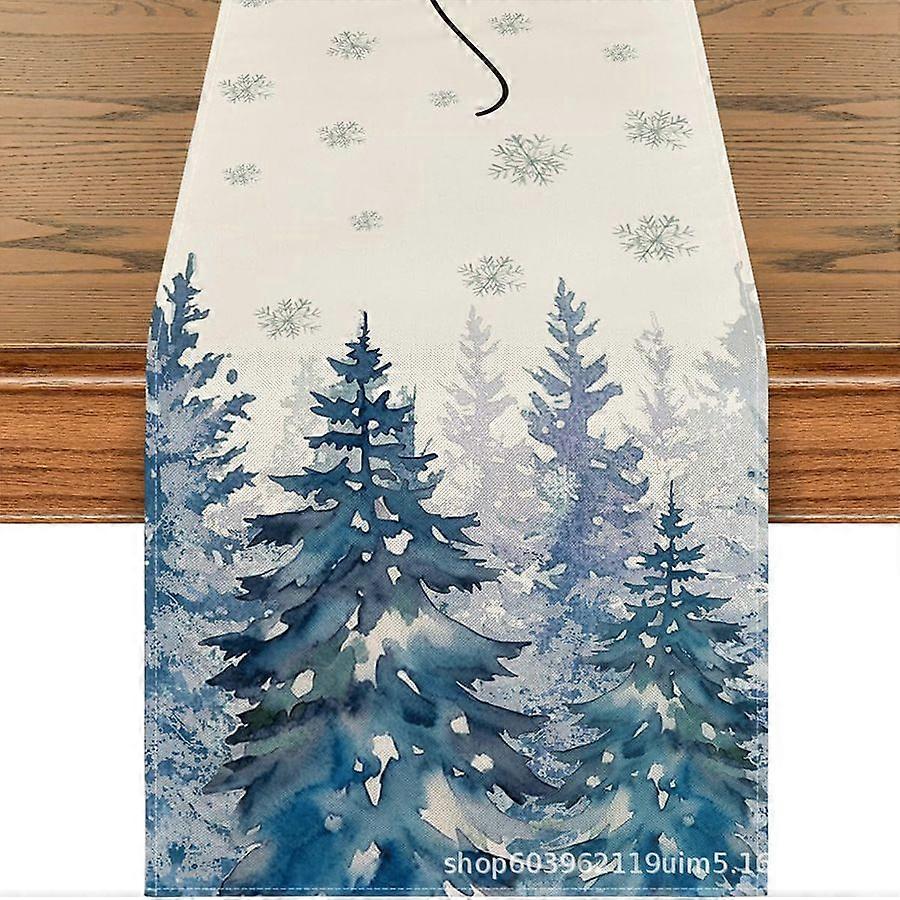 Holly Pine Cone Leaves Floral Christmas Table Runner, Seasonal Winter Kitchen