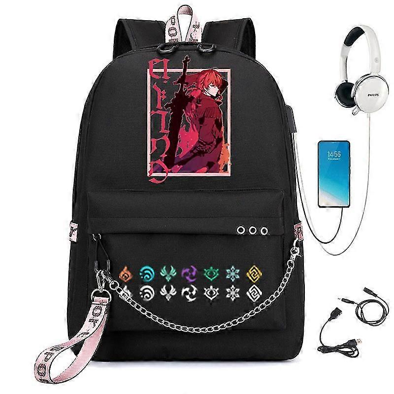 Hu Tao Genshin Impact School Bags Usb Charge Backpacks Waterproof Oxford Kids Bags Capacity Travel Bag Teenagers Schoolbags
