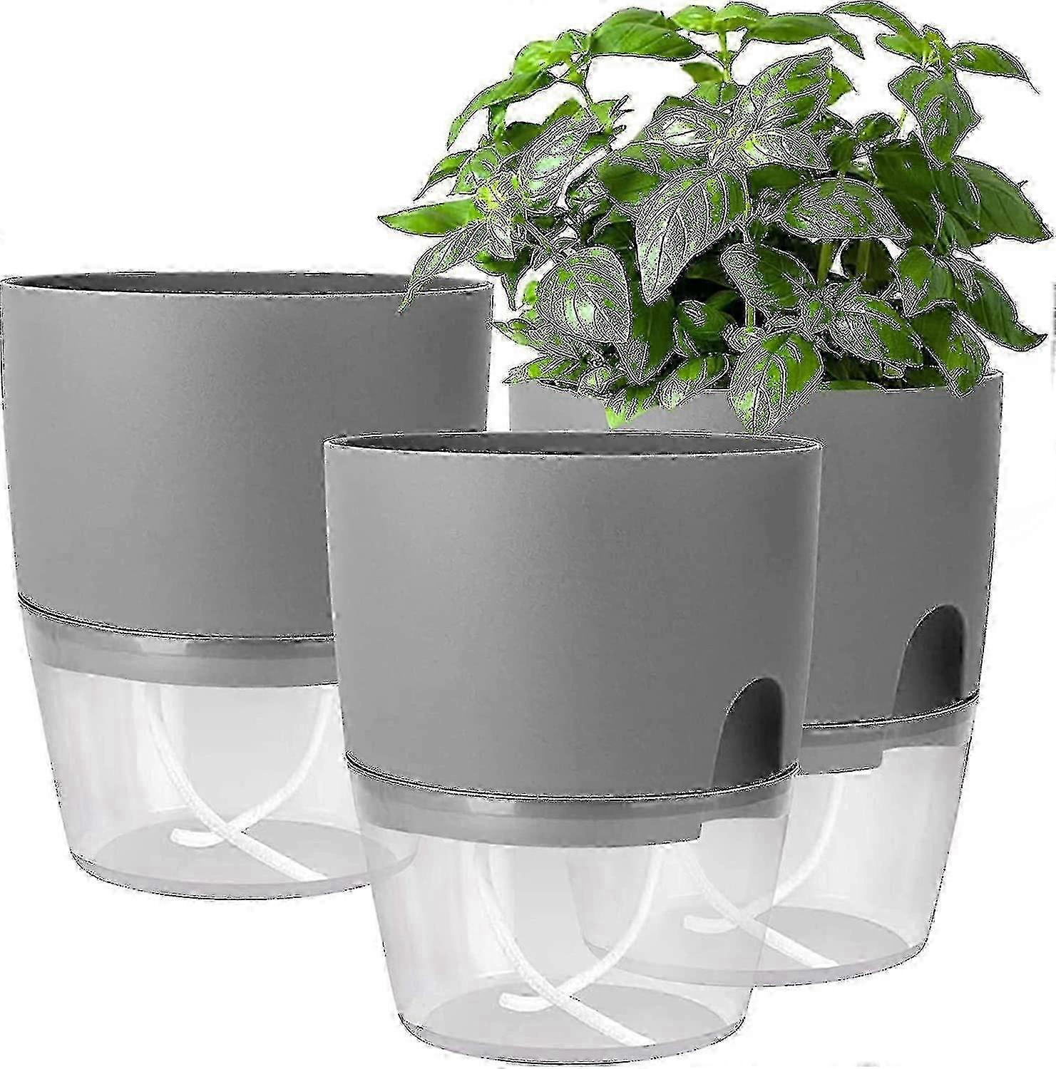 Herb Pot Kitchen Set Windowsill Self-watering Set Of 3 Herb Garden For The Kitchen, 18.2x 11x 15.3 Cm, For Fresh Kitchen Herbs, Grey