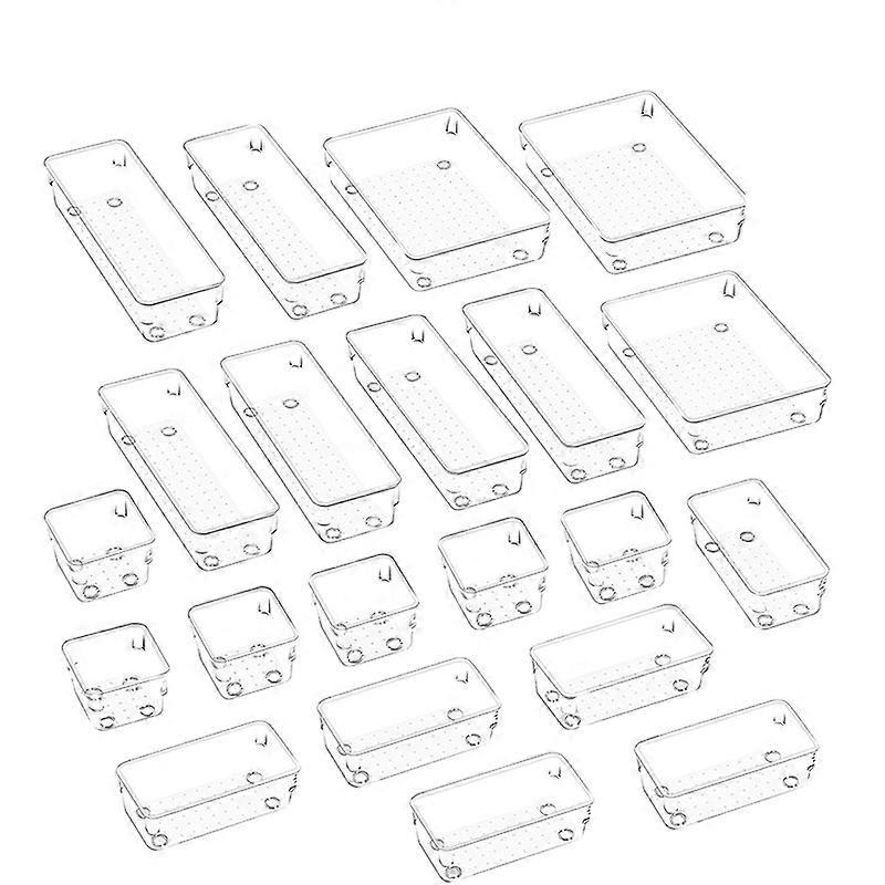Clear Plastic Desk Drawer Dividers Trays Dresser Storage Bins Separation Box