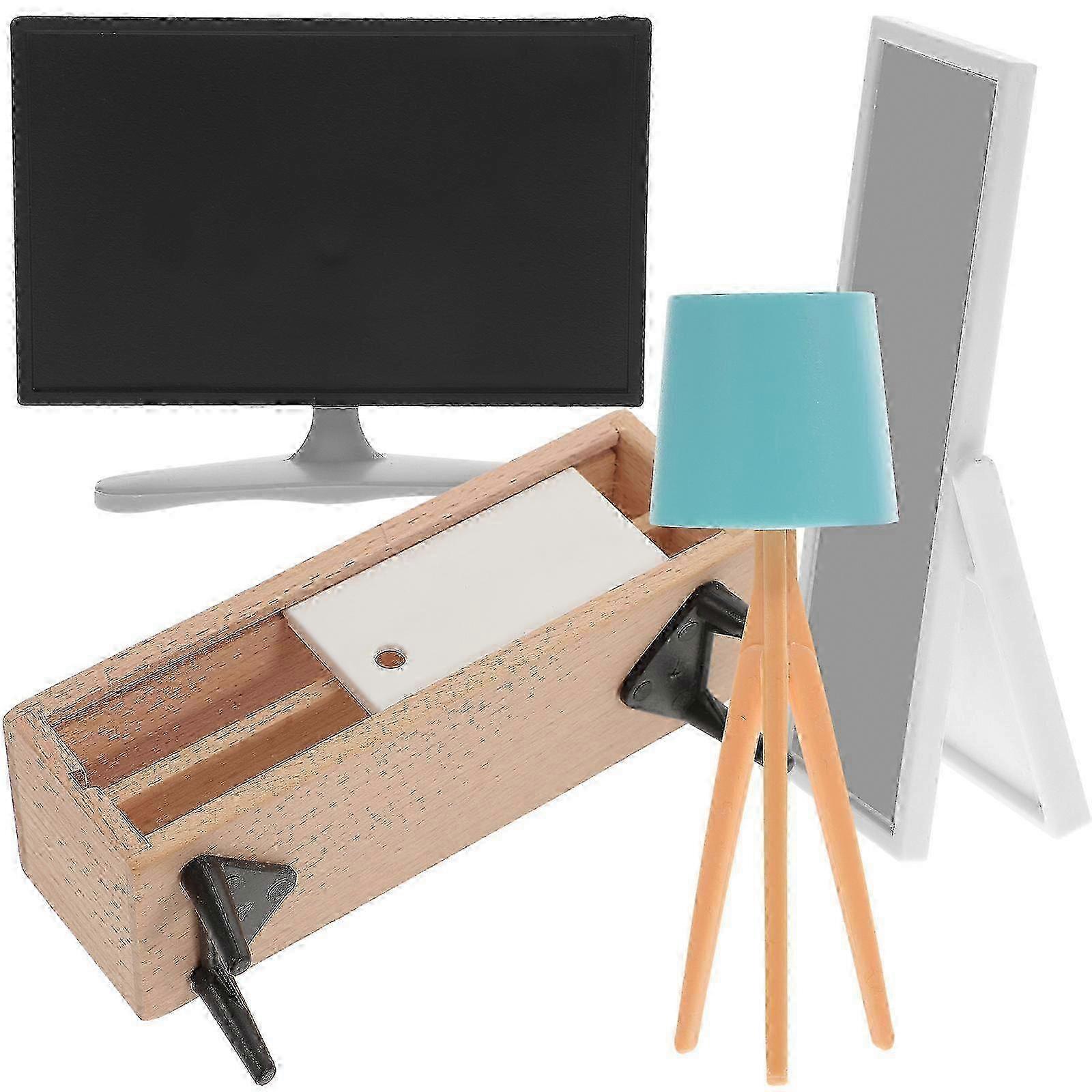 Realistic Miniature TV Cabinet and Lamp Set for Dollhouse Accessories, Assorted Colors, 4Pcs, Perfect for Creative Development