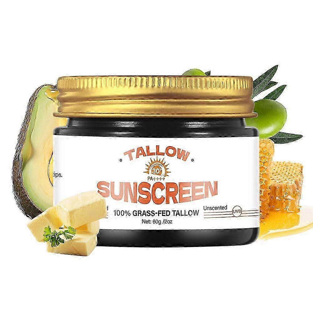 Tallow Sunscreen SPF 30, 100% Grass-Fed Tallow & Honey Extract | Non-Greasy, UVA/UVB Protection | Clean Balm for Face & Body, 2oz