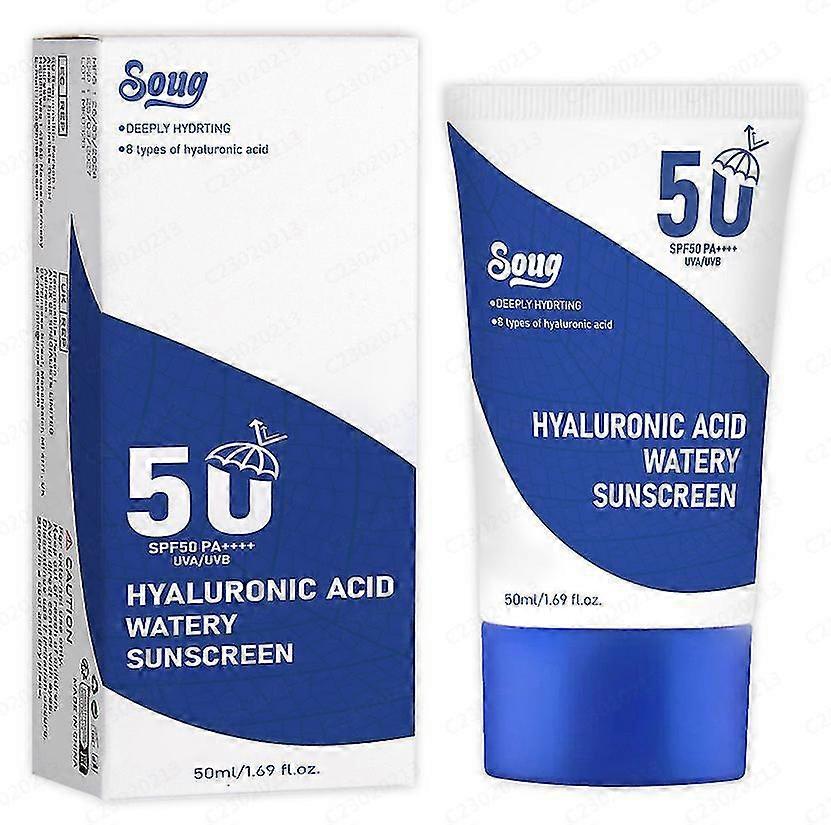 Hyaluronic Acid Water-Based Sunscreen, Sunscreen for All Skin Types, Hyaluronic Acid Natural Sunscreen SPF50 PA++++ UVA/UVB