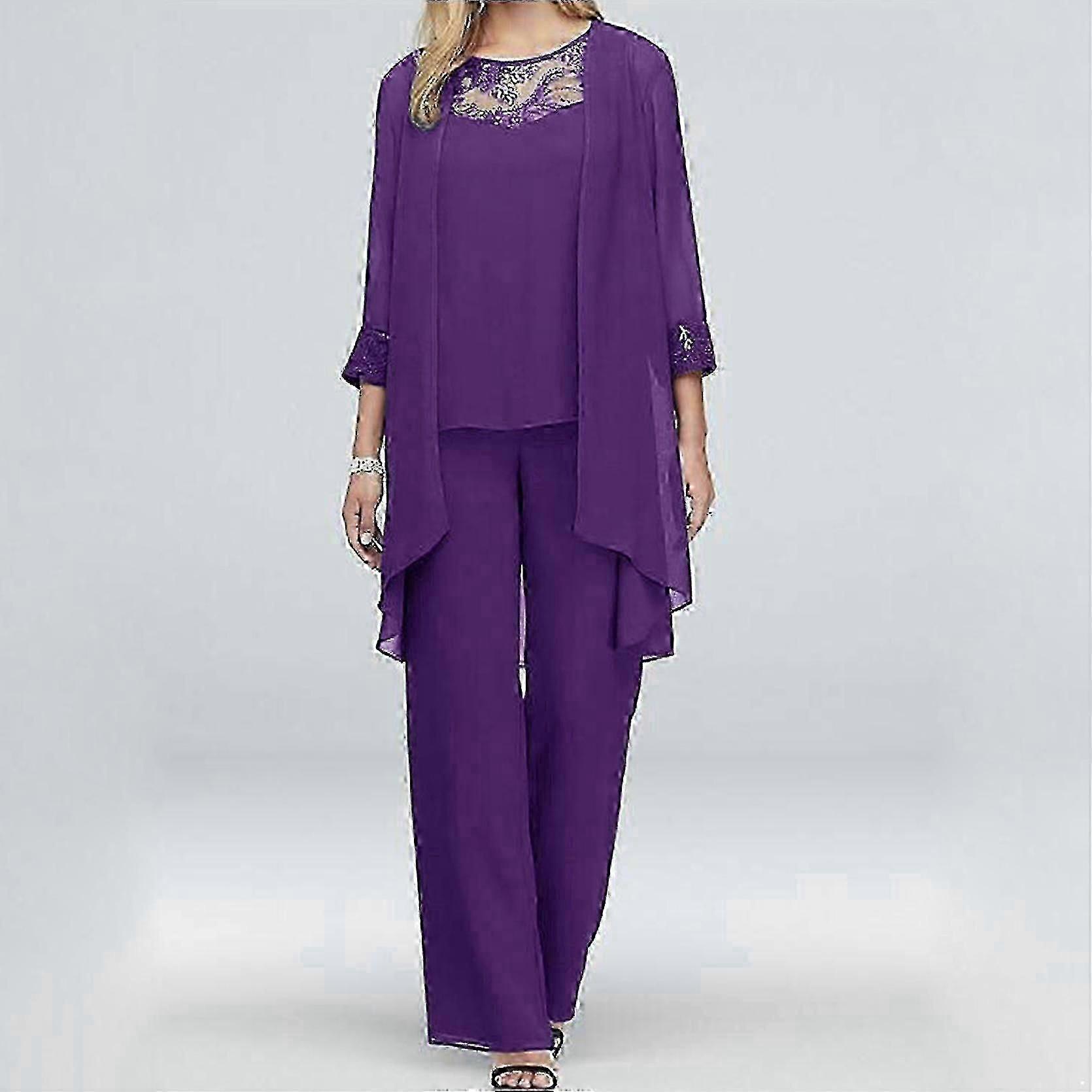 Mother of The Bride Pant Suits 3Pcs Women Wedding Formal Outfit Set Chiffon Evening Gown Plus Size