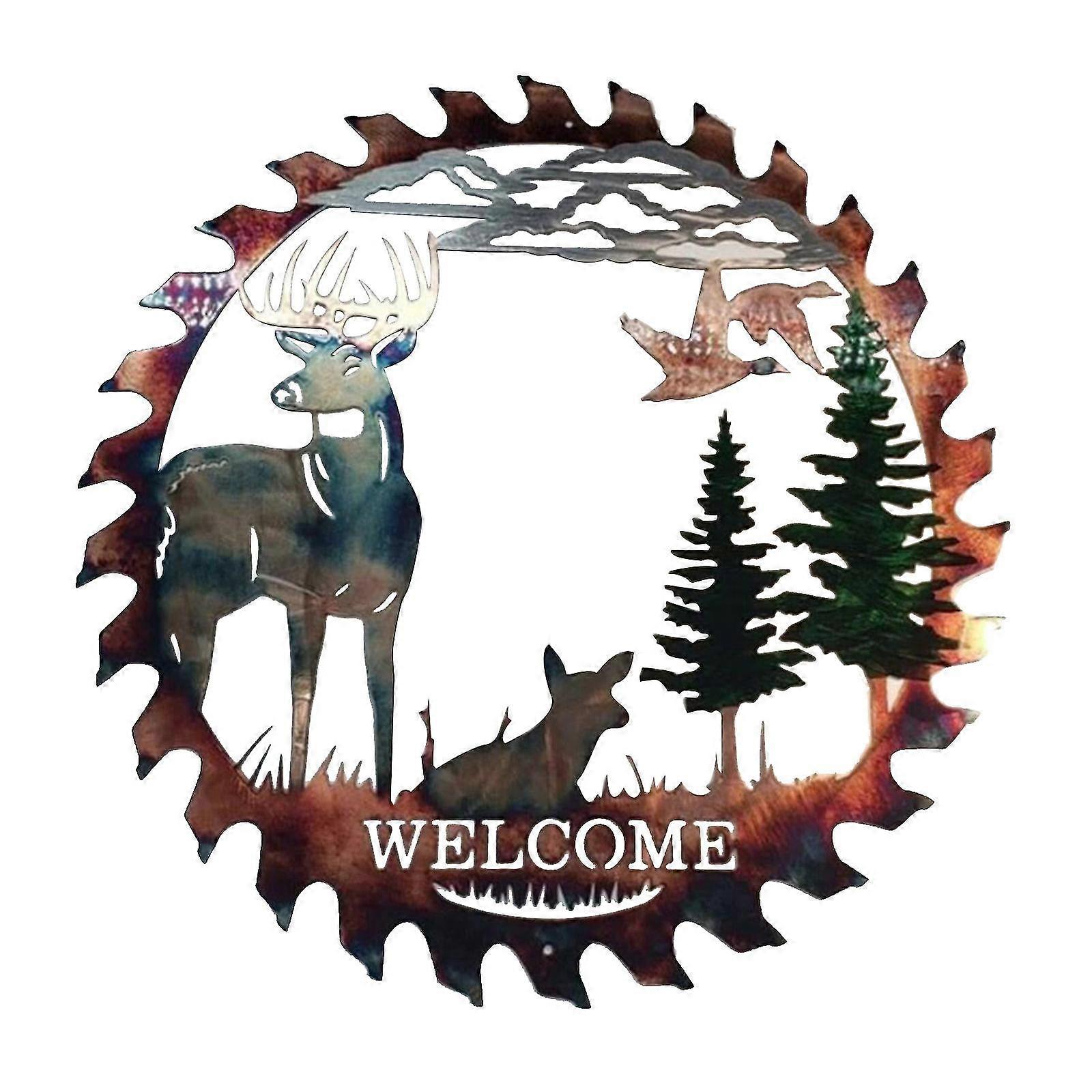 Whitetail Welcome Sawblade Cut Out Home Decor Metal Wall Art