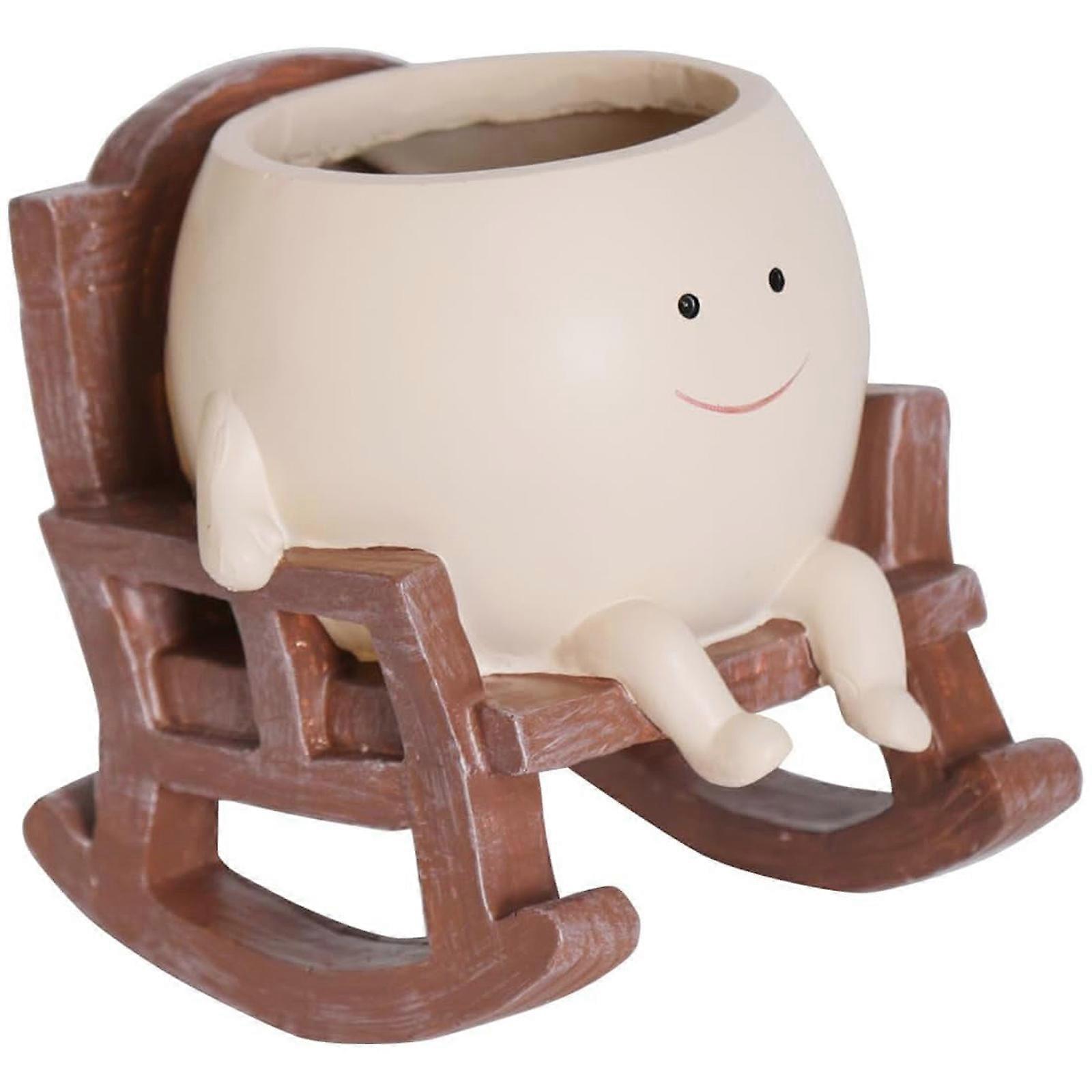 Smily Faces Planter Pot Cute Resin Flower Head Planters for Indoor Outdoor Plants Unique Sit Rocking Chair Succulent Pots Gift for Mother and Apprecia