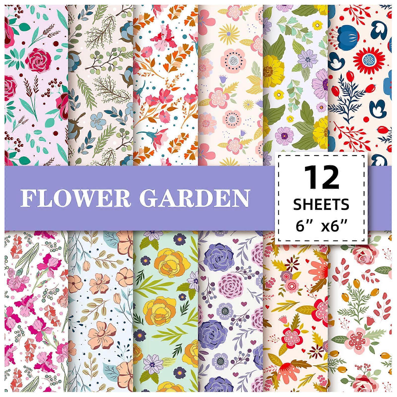 Cardstock Paper 6"x6", 48 Sheets Scrapbook Paper Pad Single-Sided Flower Plant Pattern Paper Packs, 12 Designs