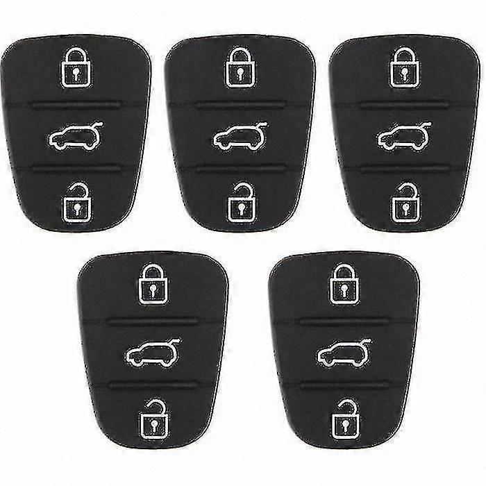 3-Button Rubber Key Shell Pads, 5-Pack Replacement Keypads for Vehicles (No Lettering)