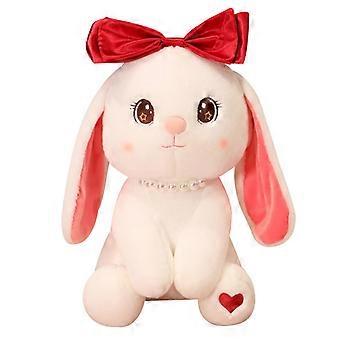 Cute bunny plush pillow, kawaii bunny stuffed animal plush toy, soft plush doll gift with bow, suitable for boys and girls