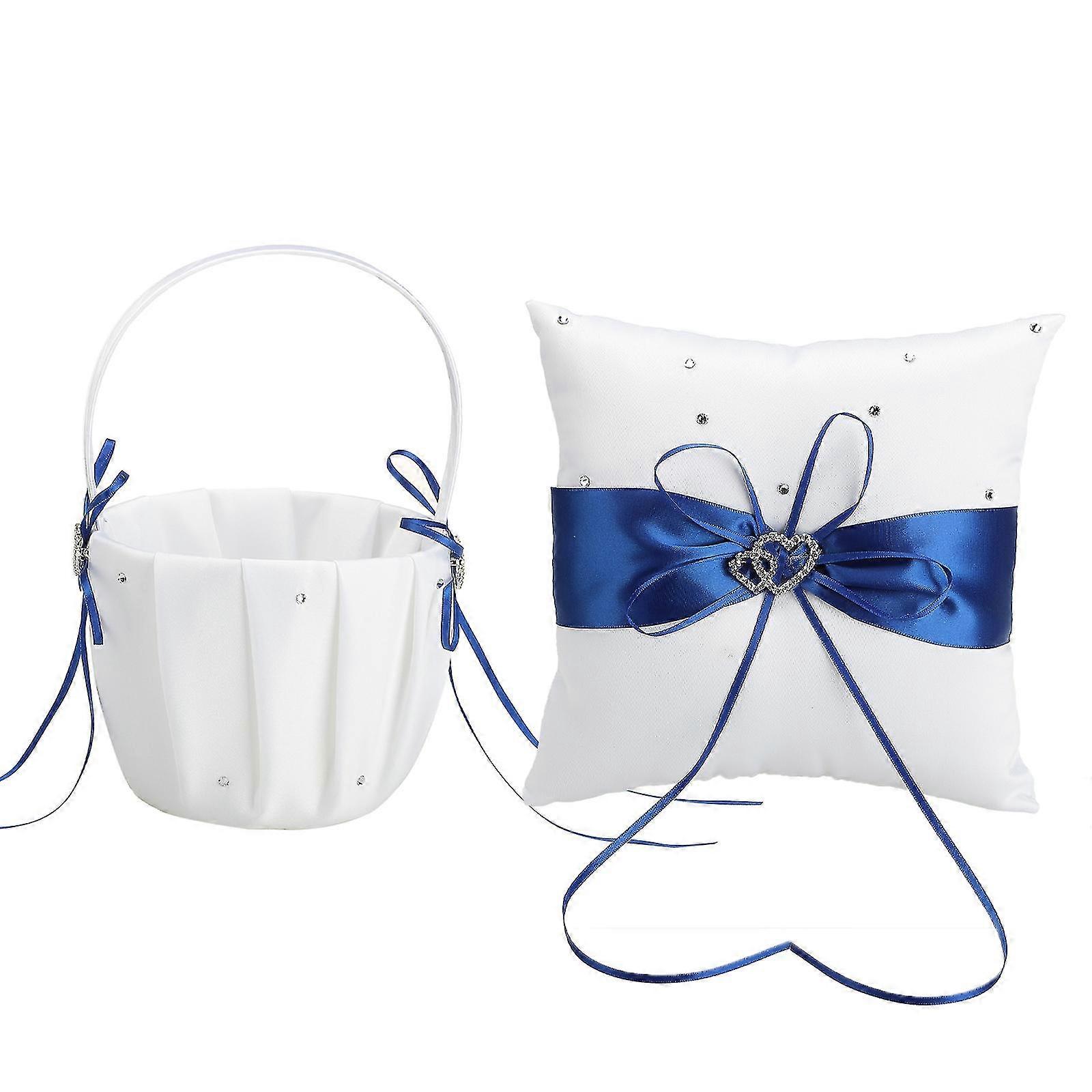 Ring Bearer Pillow and Wedding Flower Girl Basket Set with Double Heart Rhinestone Satin Wedding Basket and Ring for Wedding Ceremony Party Supplies