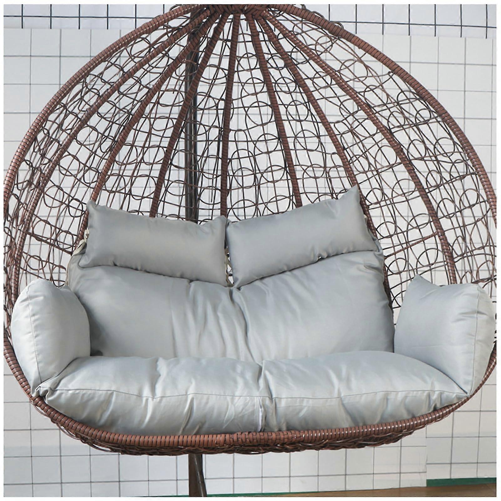 Note: This listing includes only the cushion insert for a hanging chair; the wicker chair is not included. Removable and easy to clean: The washable two-person hanging seat cushion features a zipper for easy removal and washing. Comfort and support: The non-slip design provides strong elasticity and fullness, helping the cushion retain its shape over time without flattening. With headrest and armrests: The cushion includes a headrest, armrests and backrest to deliver comprehensive comfort and support. Use scenarios: - Outdoor porch or balcony lounging on a two-person hanging chair. - Indoor sunroom or living area with a hanging chair for relaxation. - Family time for reading, napping, or casual conversation on a swing chair.