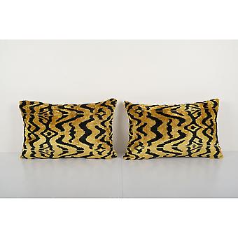 وسادة Tiger Ikat المخملية ، مجموعة من اثنين من البنغال الزخارف الحرير وسادة قطنية