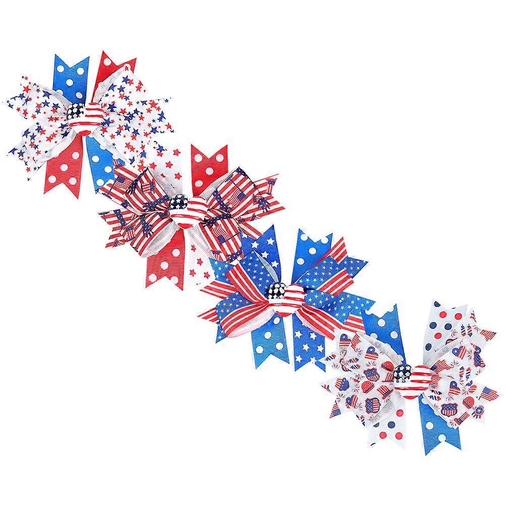 Patriotic Bow Clip 4 Pcs Bow Shape Design Hair Accessories For Girls Parties Beautiful Independence Day Hair Decoration