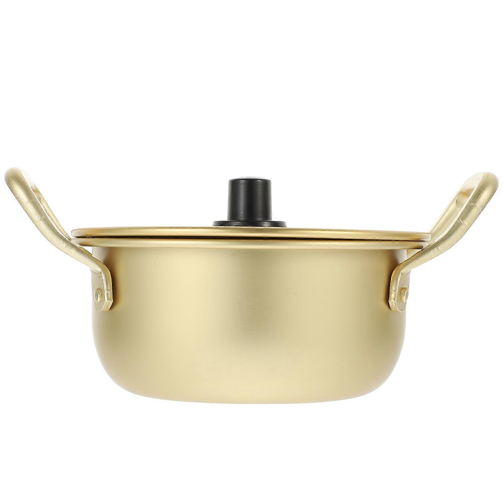 This Ramen Pot is made with aluminum material, ensuring the heat it thoroughly and evenly distributed. We are sure you are going to love the ramen pot provided by us. The Korean ramen pot can be directly heated an open flame and electric ceramic furnace convenient to use. Ramen pot with handle, more convenient to carry. Features - Color: Golden -Material:Aluminum - Size: 21.00X16.00X10.00cm/8.25X6.29X3.93in -Note: Inner diameter 14cm, with lid -Note: Lid knob style is random -Fine workmanship and fine details, stylish appearance, performance. -Adoption of aluminum material, Soup Pot is very sturdy and for long-term use -The double handles are convenient to hold and effectively prevents burns. Pot is with smooth surface, easy to clean with water, brings great convenience to prep cooking -The pot is easy to clean, freeing hands and achieving better cleaning, practical to use -With the handles, you can use the soup pot safely and conveniently. Pot is a very practical household soup pot Package list: 1 x aluminum ramen pot