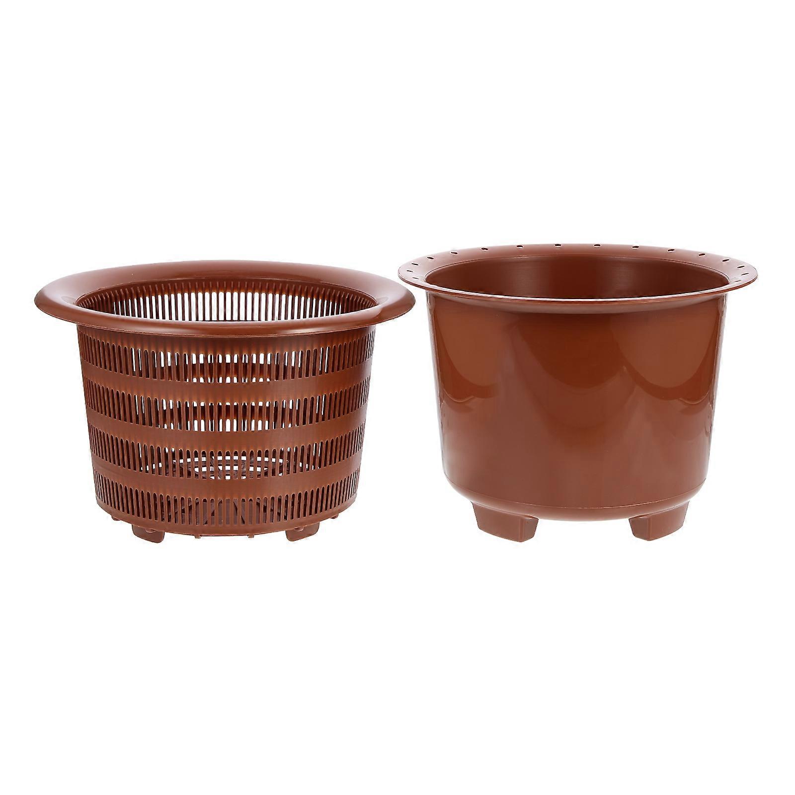 Orchard Pot Plastic Double Layers Gardening Pots Indoor Display Coffee 25.2X25.2CM Planting 1 Set