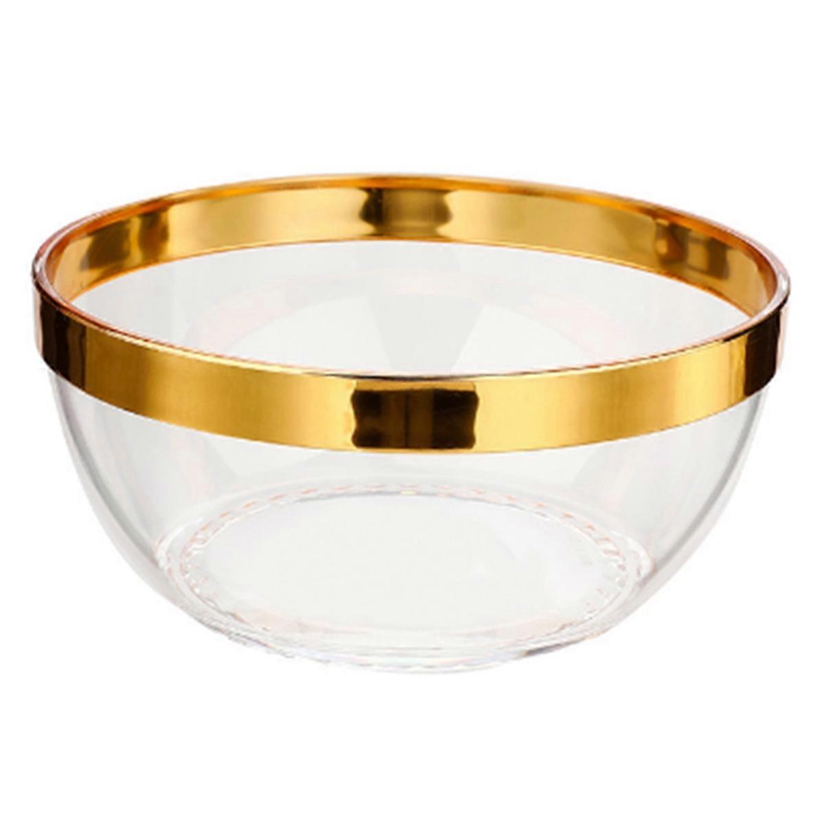 Plastic Punch Bowl, Weddings, BBQs,Gold Trim Clear Beverage Complete Set for Cocktails, Salads, Snacks, Easy to Clean