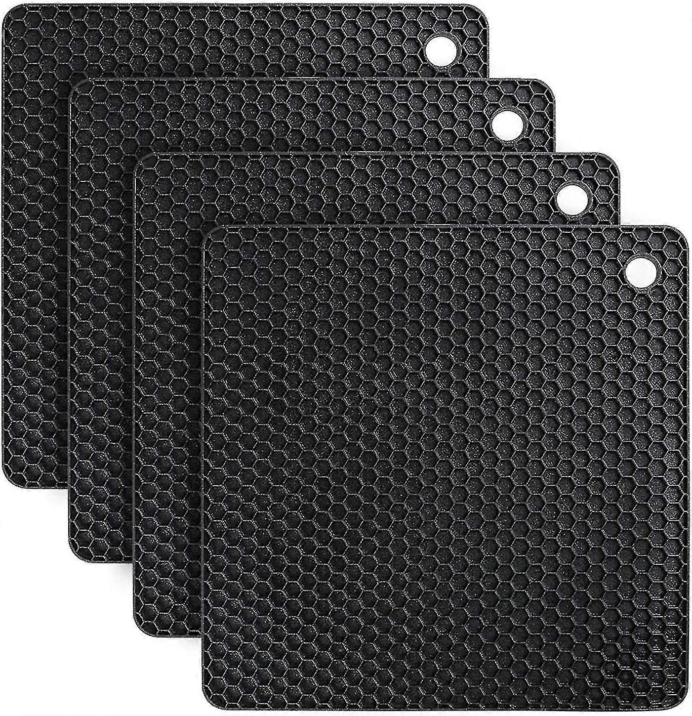 Pot Trivets 4pcs Silicone Pot Holders Dishwasher Safe Heat Resistant Non-slip Honeycomb Pattern - Black